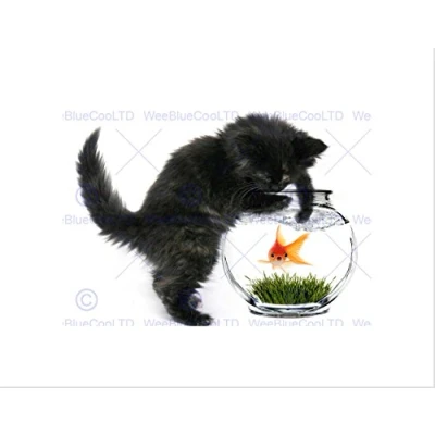 Wee Blue Coo BLACK KITTEN CAT PLAYING GOLDFISH BOWL HOME FRAMED ART PRINT B12X8922