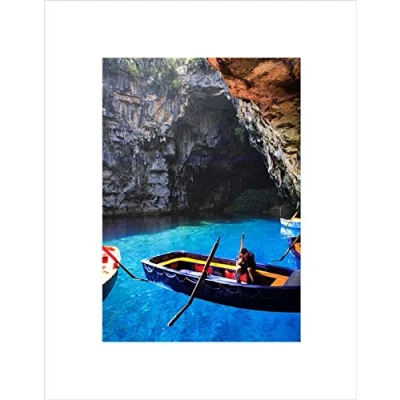 Wee Blue Coo Boat Row Oars Melissani Cave Greece Picture Wall Art Print