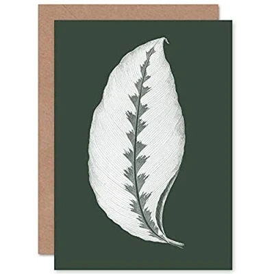Wee Blue Coo Botanics Hunter Green Jungle Leaf Greeting Card With Envelope Inside Premium Quality