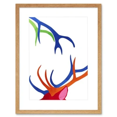 Wee Blue Coo Bright Colourful Scottish Wildlife Deer Antlers Framed Art Print