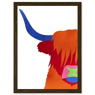 Wee Blue Coo Bright Highland Scottish Cow Bull Colourful Artwork Framed Wall Art Print A4