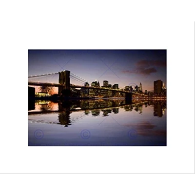 Wee Blue Coo Brooklyn Bridge Cityscape Night Light Picture Wall Art Print