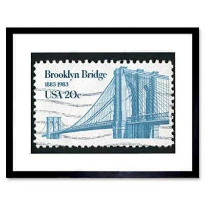 Wee Blue Coo Brooklyn Bridge Vintage Postage Stamp Framed Wall Art Print