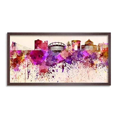 Wee Blue Coo Bucharest Skyline Romania Paint Cityscape Long Panel Framed Wall Art Print