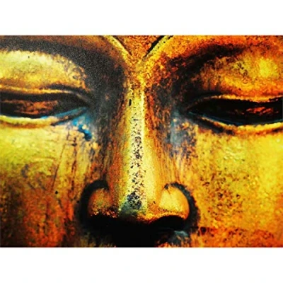 Wee Blue Coo Buddha Statue Head Face Art Print Poster Wall Decor 12X16 Inch