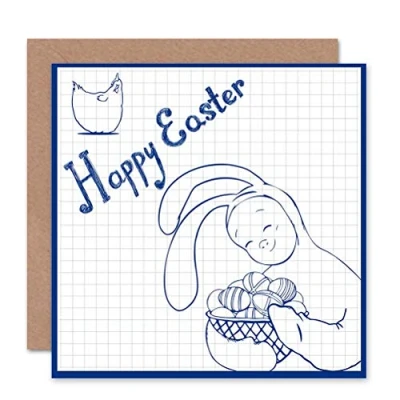 Wee Blue Coo BUNNY BLUEPRINT EASTER RABBIT BLANK GREETINGS BIRTHDAY CARD ART