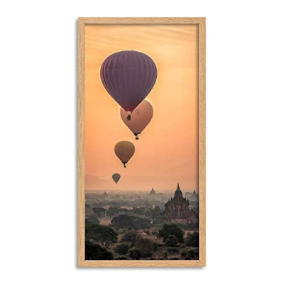 Wee Blue Coo Burma Myanmar Hot Air Balloons Bagan Temple Long Panel Framed Wall Art Print