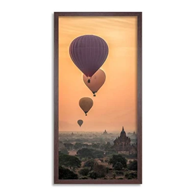Wee Blue Coo Burma Myanmar Hot Air Balloons Bagan Temple Long Panel Framed Wall Art Print