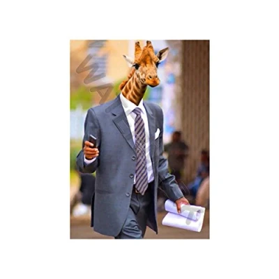Wee Blue Coo Business Giraffe Mobile Phone Wall Art Print