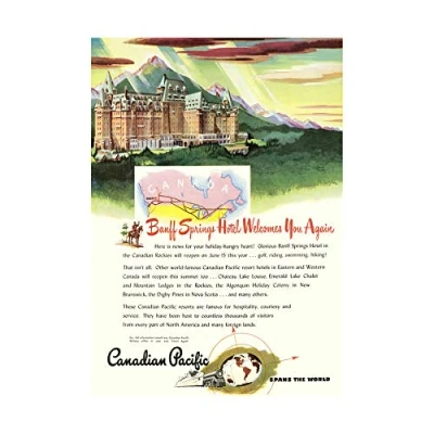 Wee Blue Coo Canada Banff Springs Hotel Ad Pacific Mountain Picture Wall Art Print