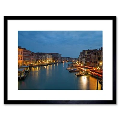 Wee Blue Coo CANAL VENICE NIGHT CITYSCAPE GONDOLA BLACK FRAMED ART PRINT PICTURE B12X8453