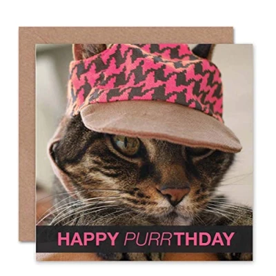 Wee Blue Coo CARD BIRTHDAY HAPPY CAT HAT CAP PURR CUTE PINK DESIGN GIFT