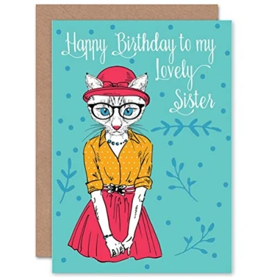 Wee Blue Coo CARD BIRTHDAY HAPPY SISTER LOVELY WELL DRESSED CAT GIFT