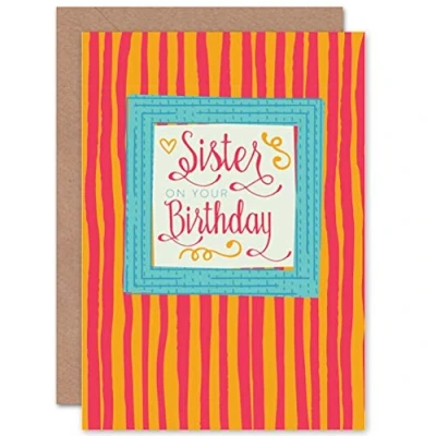 Wee Blue Coo CARD BIRTHDAY HAPPY SISTER STRIPED RETRO STAMP DESIGN GIFT