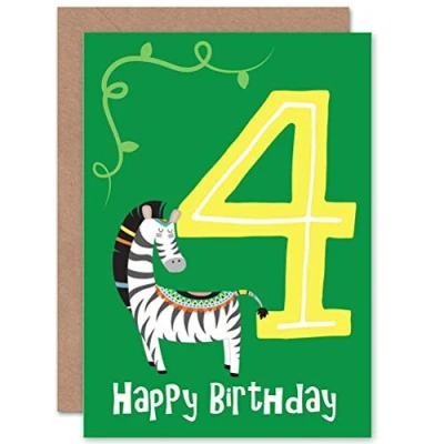 Wee Blue Coo CARD BIRTHDAY KIDS FOUR 4 NATIVE ZEBRA GIFT