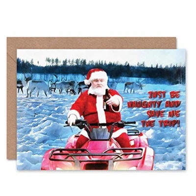 Wee Blue Coo CARD CHRISTMAS XMAS MERRY BE NAUGHTY SANTA PRESENT GIFT