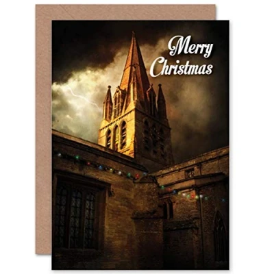 Wee Blue Coo CARD GREETING CHRISTMAS XMAS CHURCH STEEPLE LIGHTNING