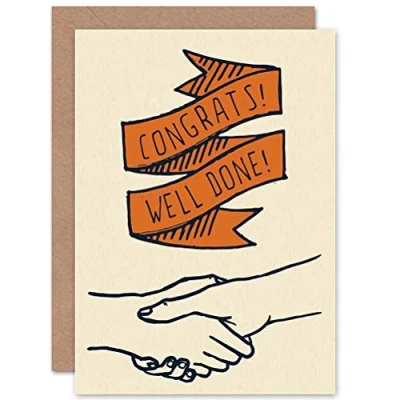 Wee Blue Coo CARD GREETING CONGRATULATIONS HANDSHAKE SCROLL GIFT