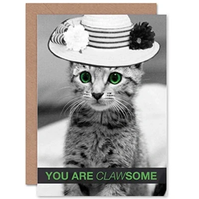 Wee Blue Coo CARD GREETING FRIENDSHIP CUTE CAT HAT CLAW AWESOME GIFT