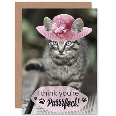 Wee Blue Coo CARD GREETING FRIENDSHIP CUTE CAT HAT PURR PINK FUN GIFT