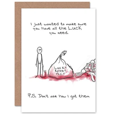 Wee Blue Coo CARD GREETING GOOD LUCK ADULT THEME RABBIT FOOT BLOOD GIFT