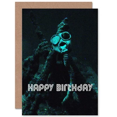Wee Blue Coo CARD GREETING HAPPY BIRTHDAY CREEPY UNDERSEA GAS MASK GOTHIC