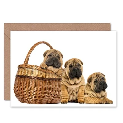 Wee Blue Coo CARD GREETING SHARPEI PUPPY DOGS BASKET