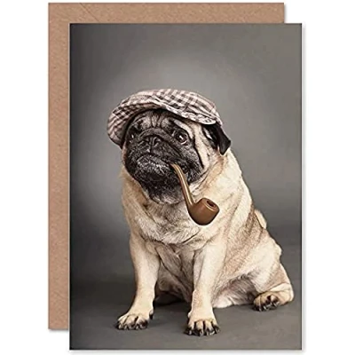 Wee Blue Coo CARD GREETING SNAPPY PUG PUPPY DOG SMOKING PIPE GIFT