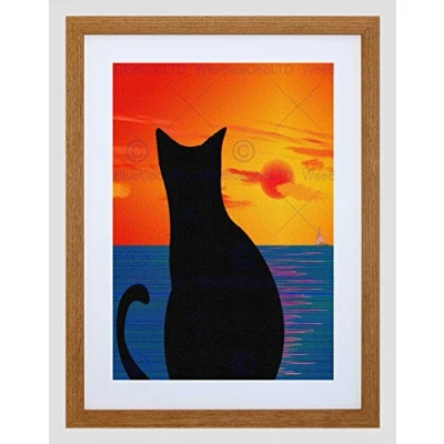 Wee Blue Coo Cat Landscape Abstract Silhouette Sunset Sea Boat Framed Wall Art Print