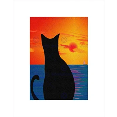 Wee Blue Coo Cat Landscape Abstract Silhouette Sunset Sea Boat Wall Art Print
