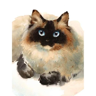 Wee Blue Coo Cat Ragdoll Face Watercolour Unframed Art Print Poster Wall Decor 12x16 inch
