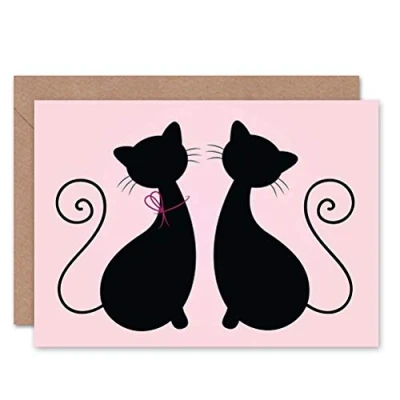 Wee Blue Coo CAT SILHOUETTE COUPLE VALENTINES BLANK GREETINGS BIRTHDAY CARD ART