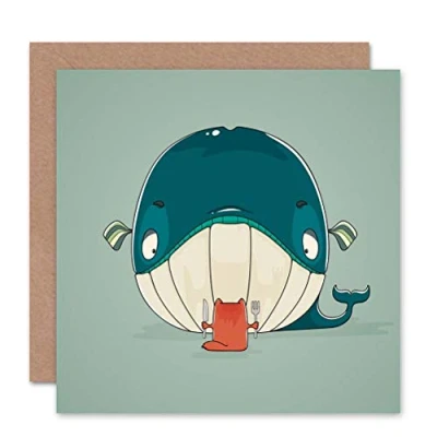Wee Blue Coo CAT WHALE FUNNY CARTOON GREETINGS BLANK BIRTHDAY CARD ART