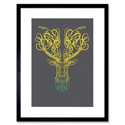 Wee Blue Coo Celtic Knot Stag Head Deer Ornate Decorative Scottish Framed Wall Art Print