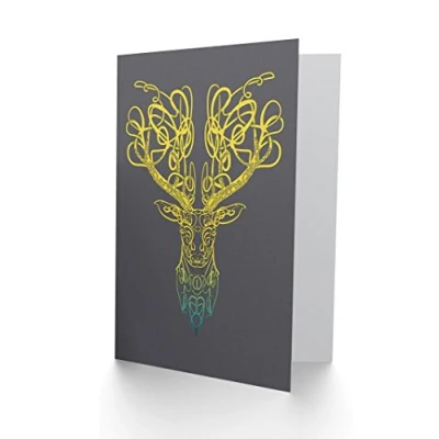 Wee Blue Coo Celtic Knot Stag Head Deer Ornate Decorative Scottish Greetings Card