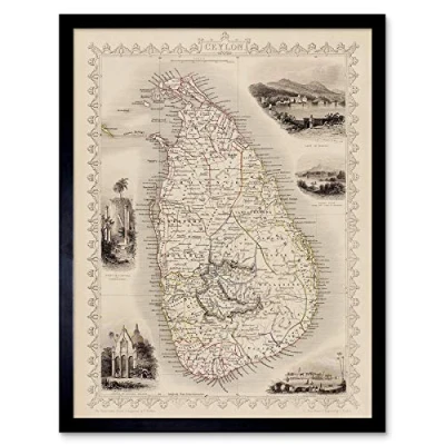 Wee Blue Coo Ceylon Sri Lanka Map Art Print Framed Poster Wall Decor 12X16 Inch