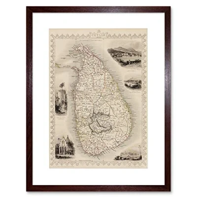 Wee Blue Coo Ceylon Sri Lanka Map Framed Wall Art Print