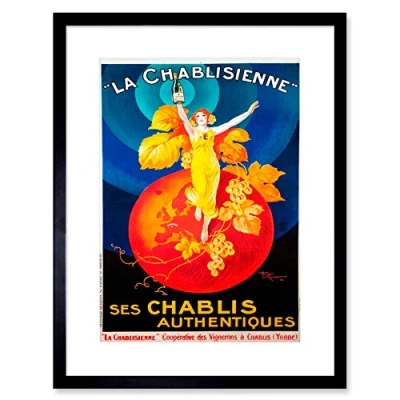 Wee Blue Coo Chablis Wine Vintage Artwork Framed Wall Art Print 12X16 Inch