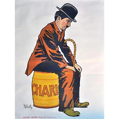 Wee Blue Coo Charlie Chaplin Silent Film Star Barrel Large Wall Art Poster Print Thick Paper 18X24 Inch