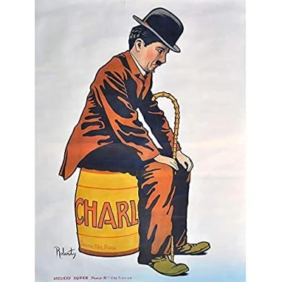 Wee Blue Coo Charlie Chaplin Silent Film Star Barrel Unframed Art Print Poster Wall Decor 12X16 Inch