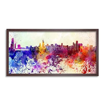 Wee Blue Coo Chicago Skyline USA Paint Splash Cityscape Long Panel Framed Wall Art Print