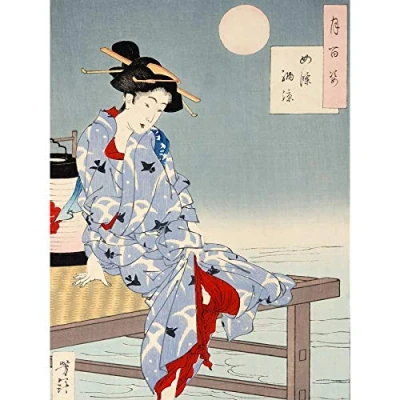 Wee Blue Coo Chikanobu Japanese Geisha Pier Moon Large Wall Art Poster Print Thick Paper 18X24 Inch