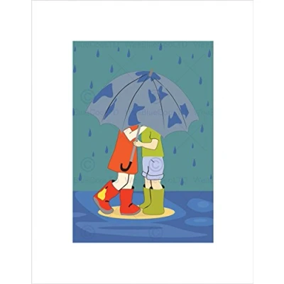 Wee Blue Coo Children Umbrella Rain Boot Art Wall Print