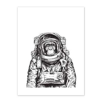 Wee Blue Coo Chimpanzee Astronaut Space Animal Art Print Canvas Premium Wall Decor Poster
