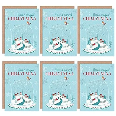 Wee Blue Coo Christmas Cards 6 Pack Magical Robin Snow Globe Set Xmas