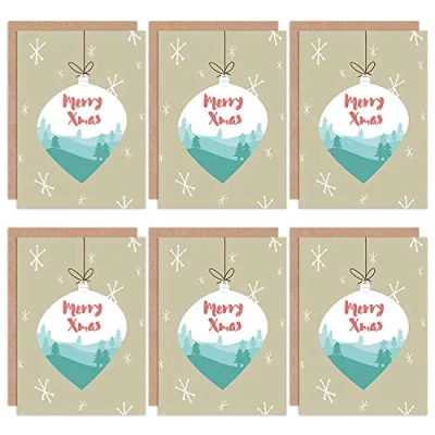 Wee Blue Coo Christmas Cards x6 Merry Xmas Bauble Winter Scene Set