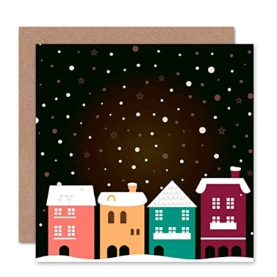 Wee Blue Coo CHRISTMAS STREET SNOW NIGHT BLANK GREETINGS CARD ART