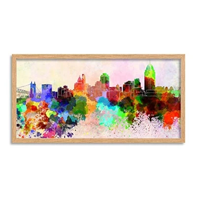 Wee Blue Coo Cincinnati Ohio Skyline Paint Splash Cityscape Long Panel Framed Wall Art Print
