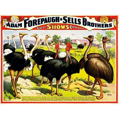 Wee Blue Coo Circus Show Forepaugh Sells Brothers Ostrich Emu Birds USA Art Print Poster Wall Decor 12X16 Inch