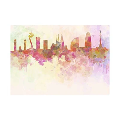 Wee Blue Coo Cityscape Barcelona Spain Paint Splash Skyline Picture Wall Art Print